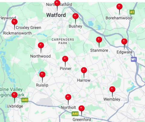 Harrow · Wembley · Edgware · Pinner · Northolt · Ruislip · Kingsbury and surrounding areas.